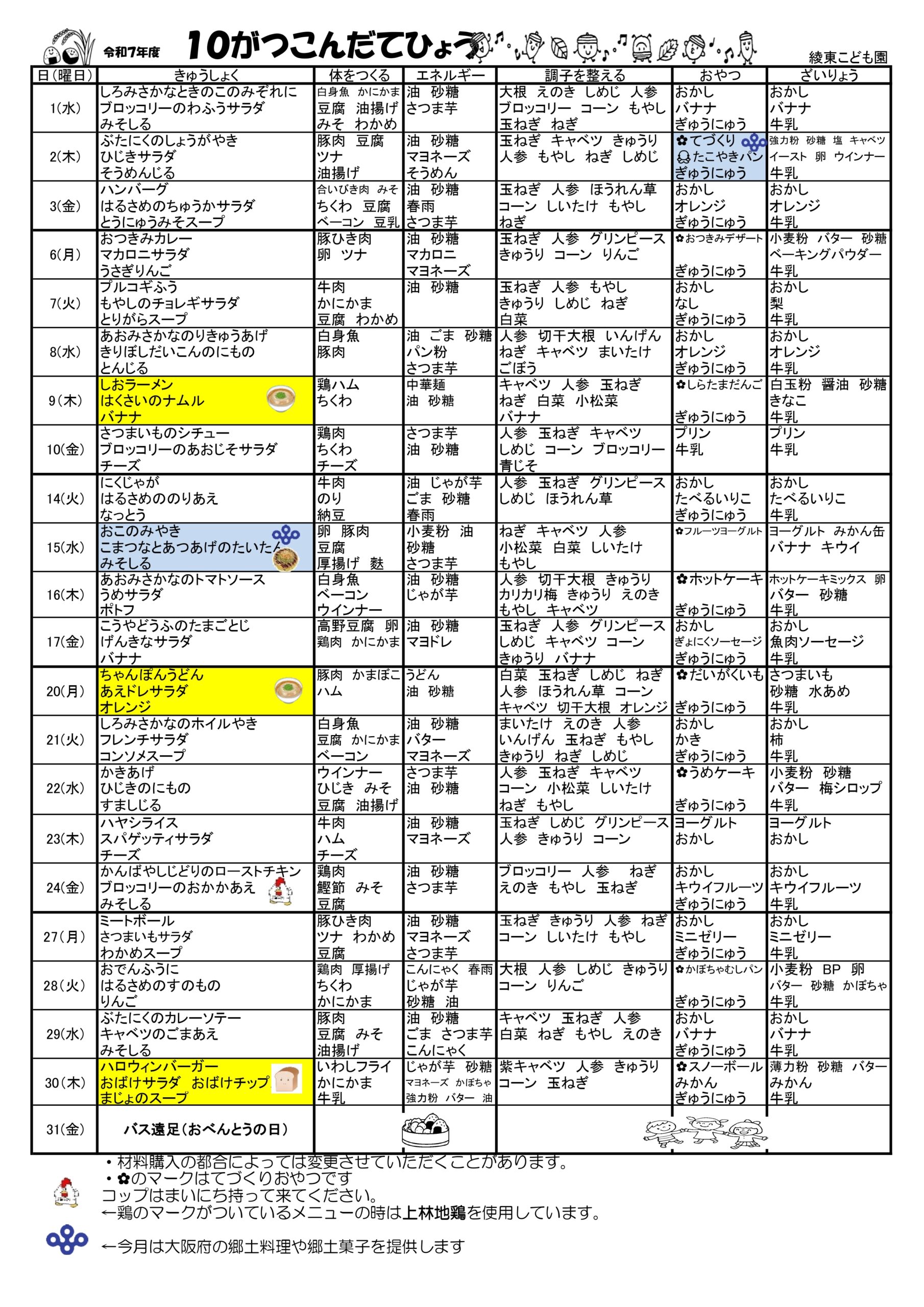 令和7年度献立表&給食だより(10月号)追加いたしました。クリックするとPDFで表示されます。