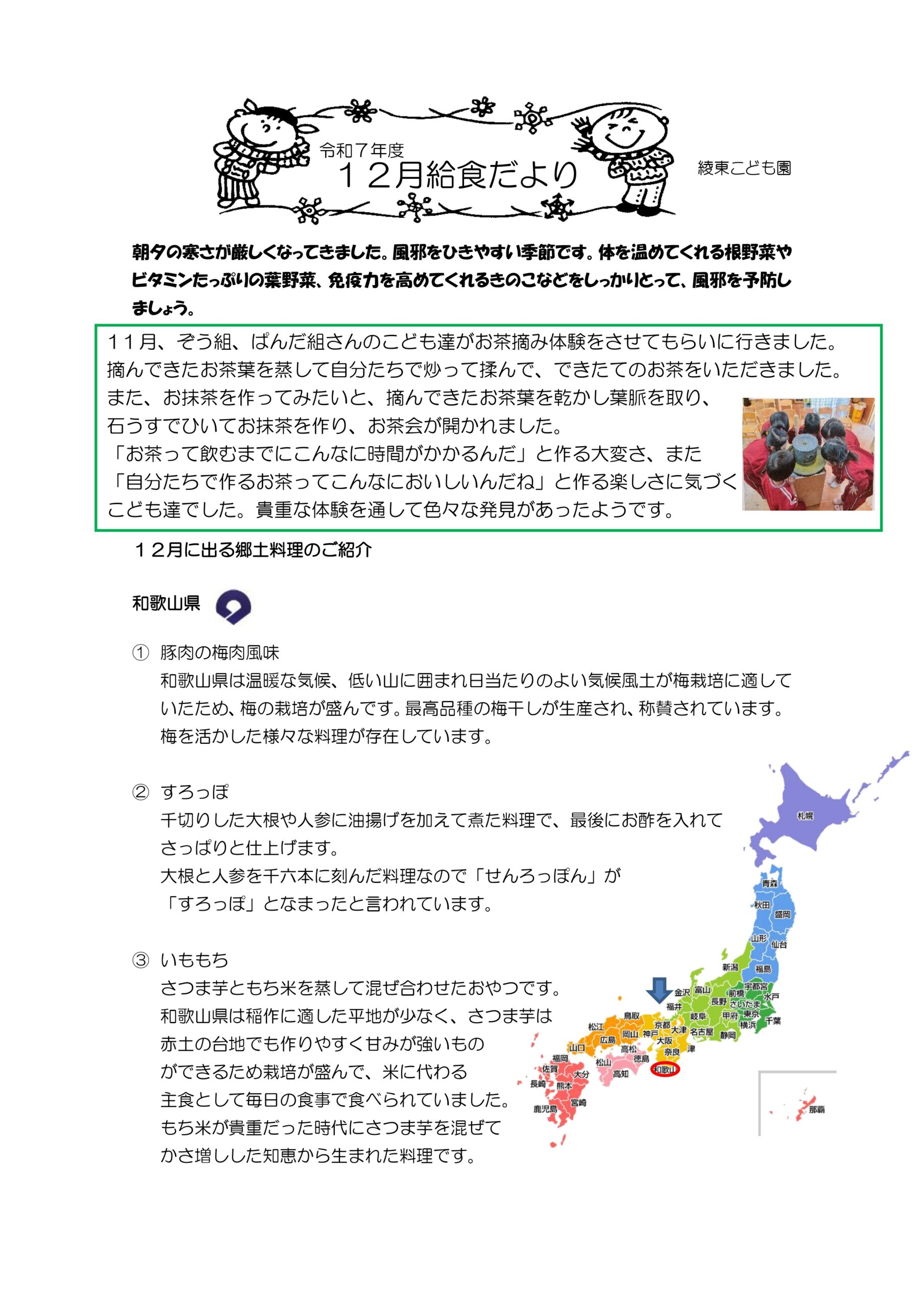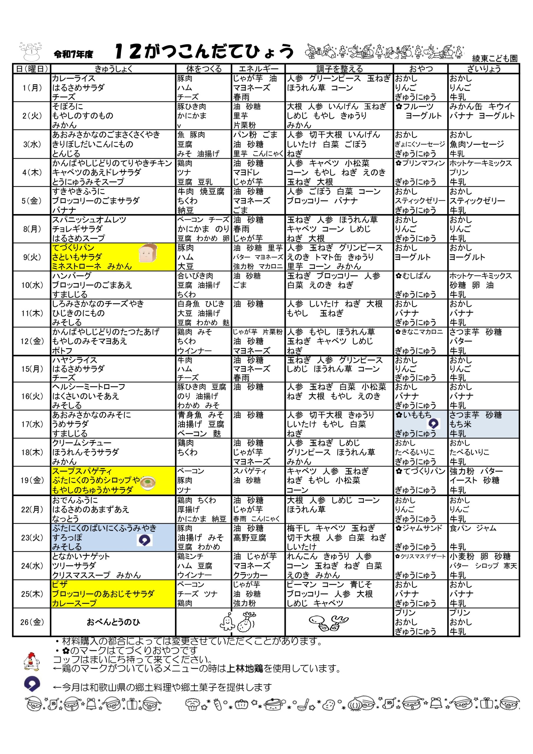 令和7年度献立表&給食だより(12月号)追加いたしました。クリックするとPDFで表示されます。