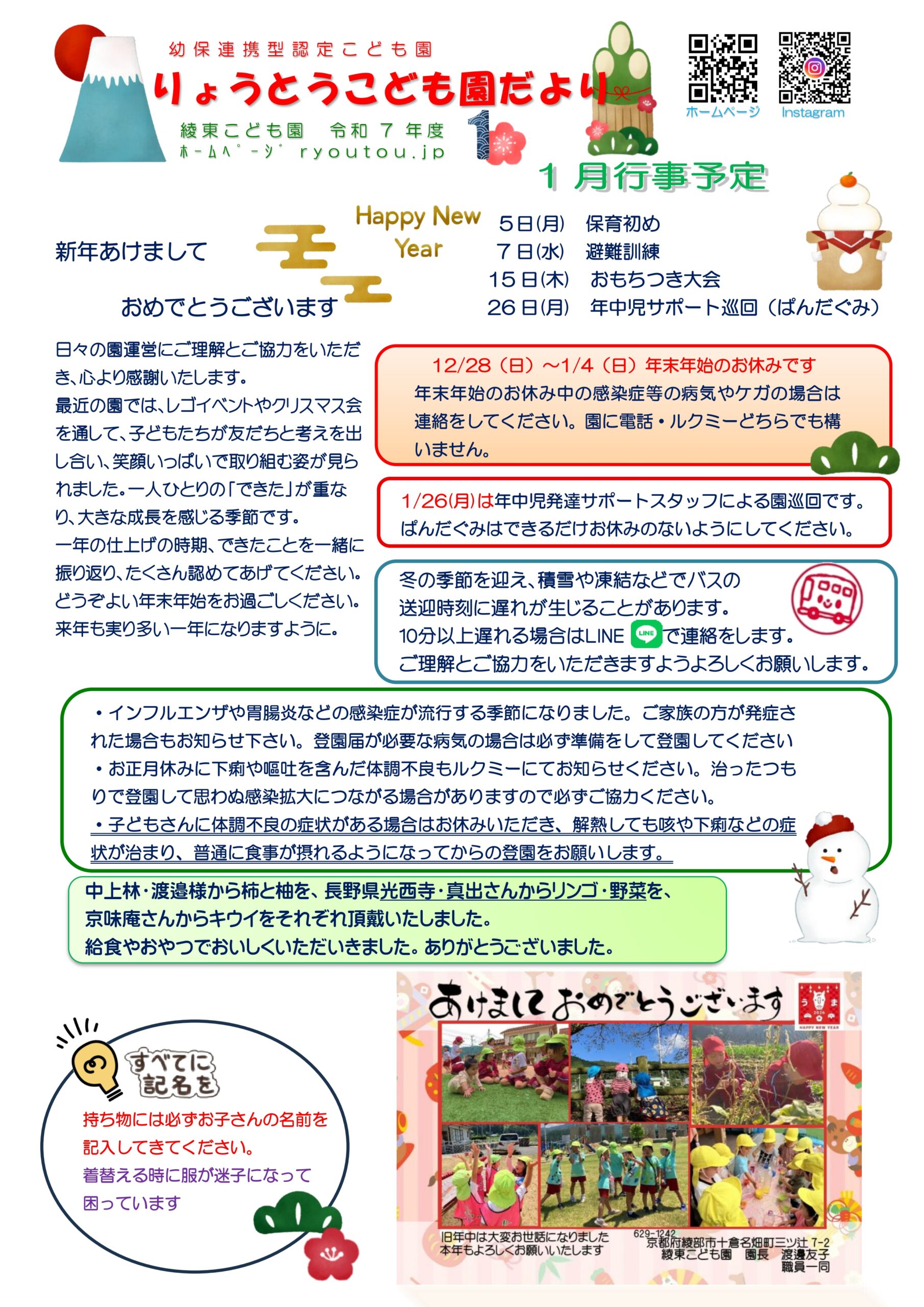 2026.01.01 綾東こども園ニュース 綾東だよりR7年度(1月号)追加いたしました。(令和8年1月) 令和7年度綾東だより(1月号)追加いたしました。(令和8年1月) クリックするとPDFで表示またはダウンロードされます。